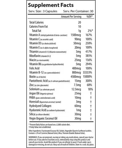 Alpha Supps Hair, Skin & Nails is a powerful blend of 11 essential vitamins, minerals, and nourishing ingredients designed to support the health of your hair, skin, and nails. This comprehensive formula features key nutrients like Biotin, Hydrolyzed Collagen, and Niacin to strengthen brittle nails, promote vibrant skin, and encourage healthy hair growth.